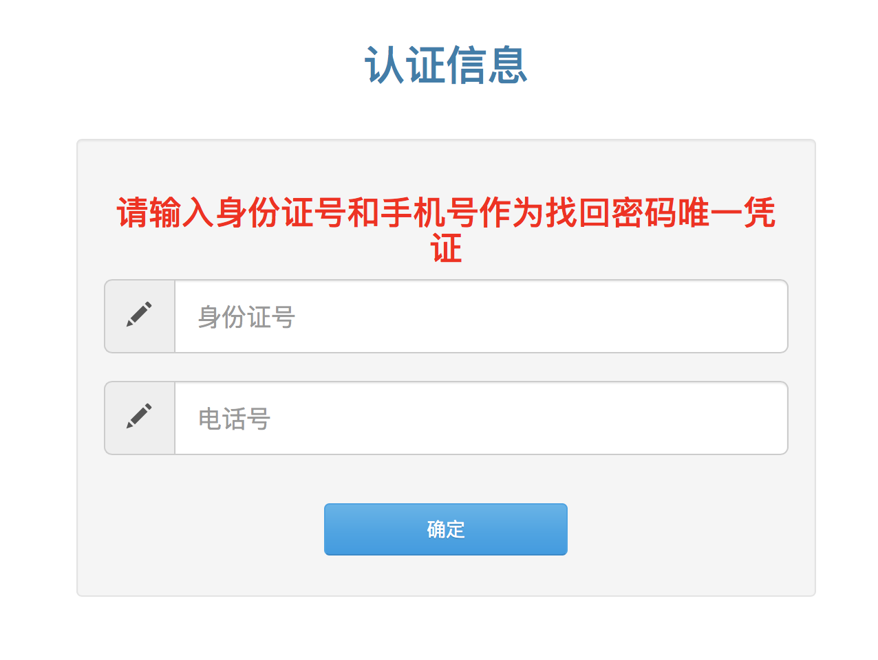输入正确的身份证号和手机号码(注:请一定输入自己的身份证号和手机号码,此信息用于找回密码)